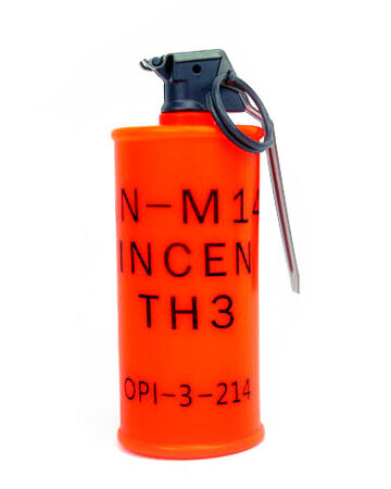 Saya juga mengeluarkan beberapa granat dari kotak, TH3. Itu adalah pilihan lain yang bisa saya gunakan untuk membakar zombie. Mereka dikenal sebagai Thermate Grenades. Itu adalah silinder merah sepanjang 15 cm dan akan meledak tiga detik setelah pin ditarik. Mereka tampak seperti kembang api besar, tetapi radius kerusakannya mencapai sekitar 2 meter di kehidupan nyata dan 3 meter di VMB. Waktu pembakaran sekitar 20 hingga 30 detik, cukup untuk menyebar ke lingkungan. Dengan suhu lebih dari 2000C, mereka bahkan bisa membakar lubang pada balok baja.